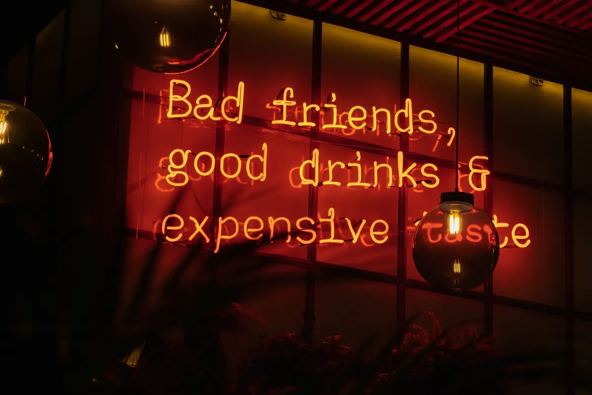 I glance down — empty glass. Perfect excuse for a quick escape.